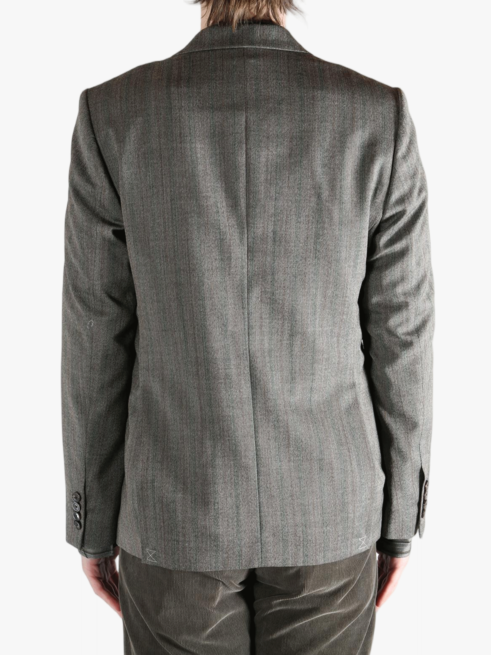 Grey jacket worn by a person, showing the jacket's fit