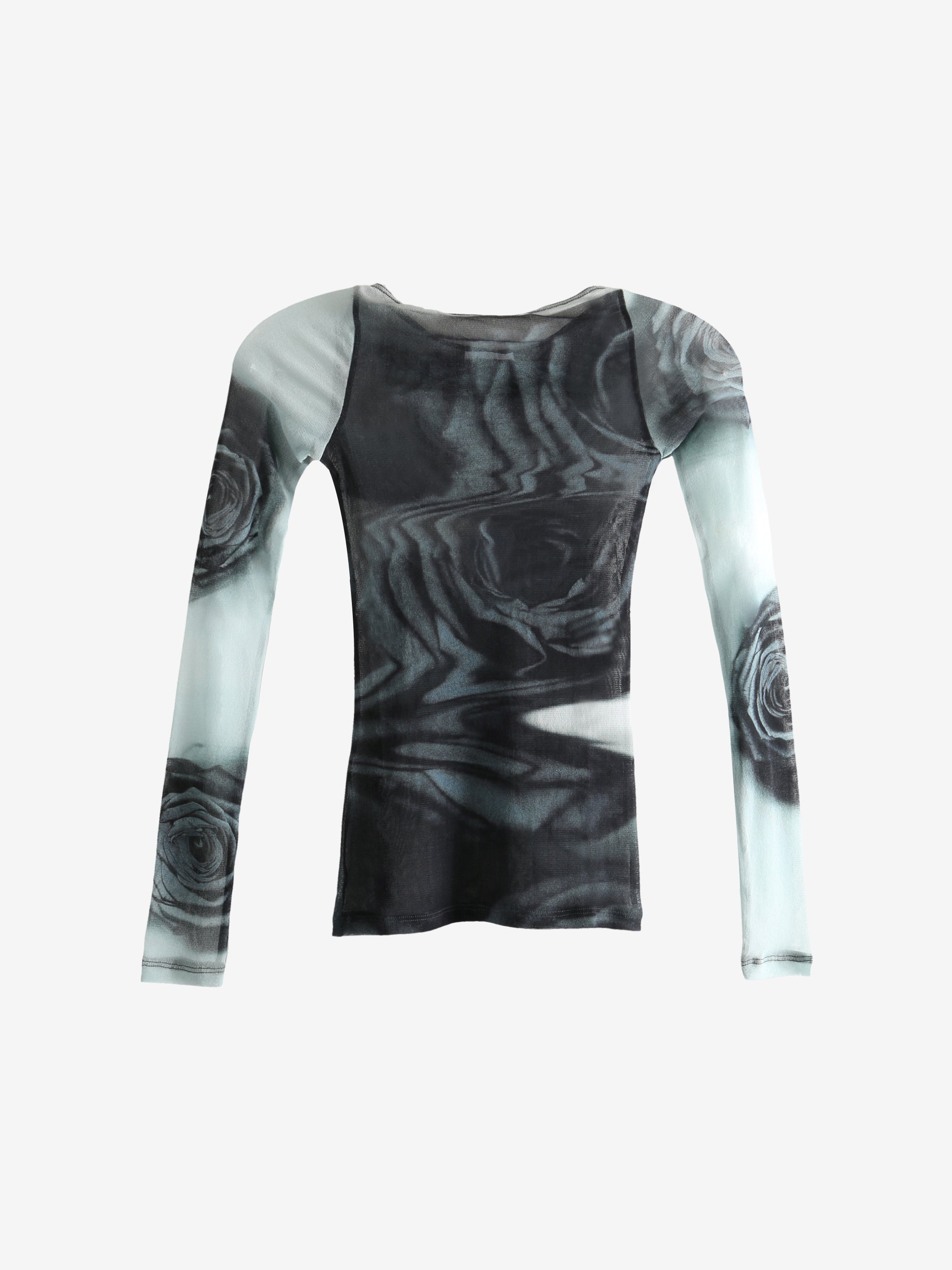Mesh Boat L.S. "Blurry Roses" Neck Top