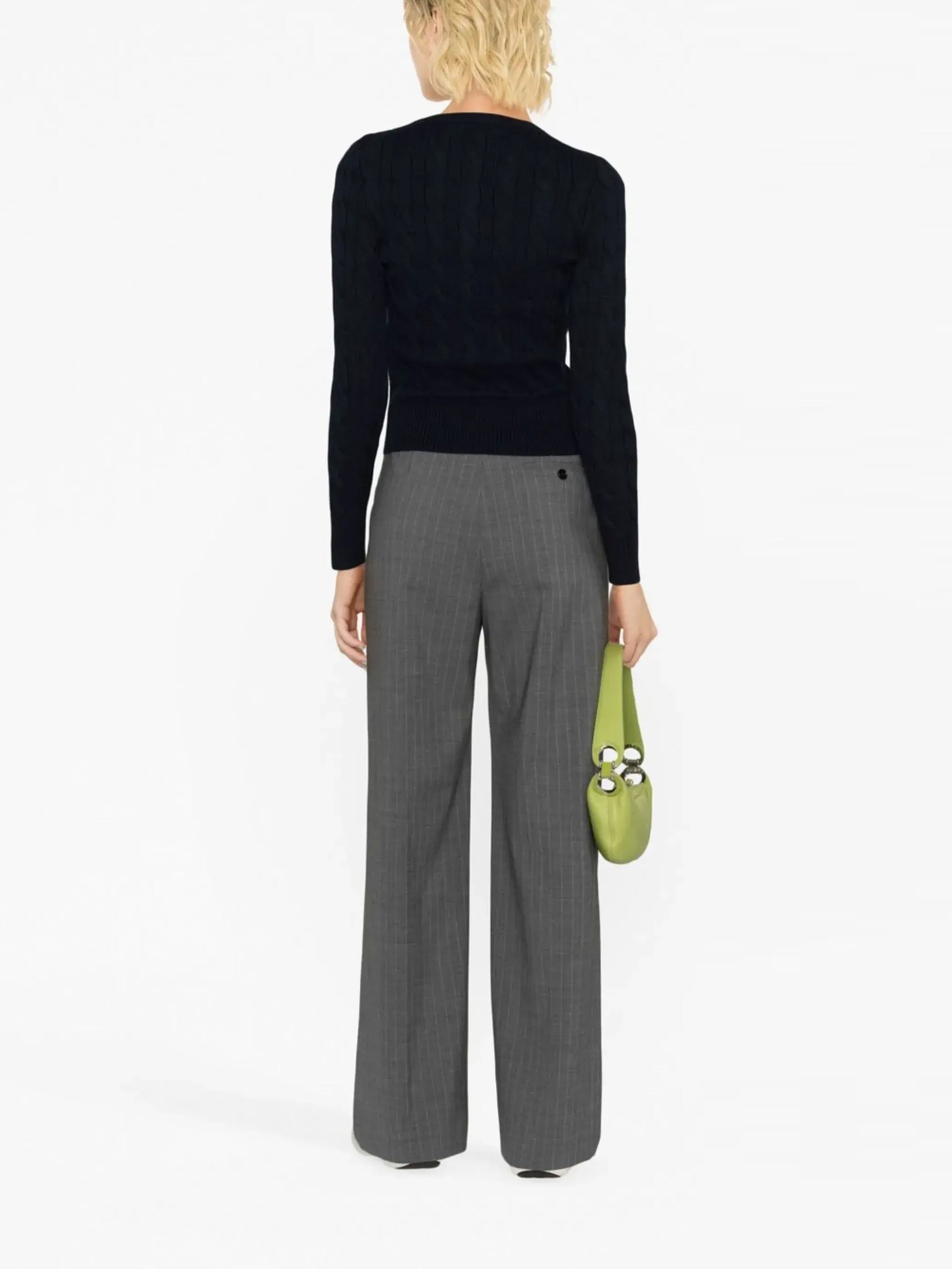 - Button fastening with grosgrain finish