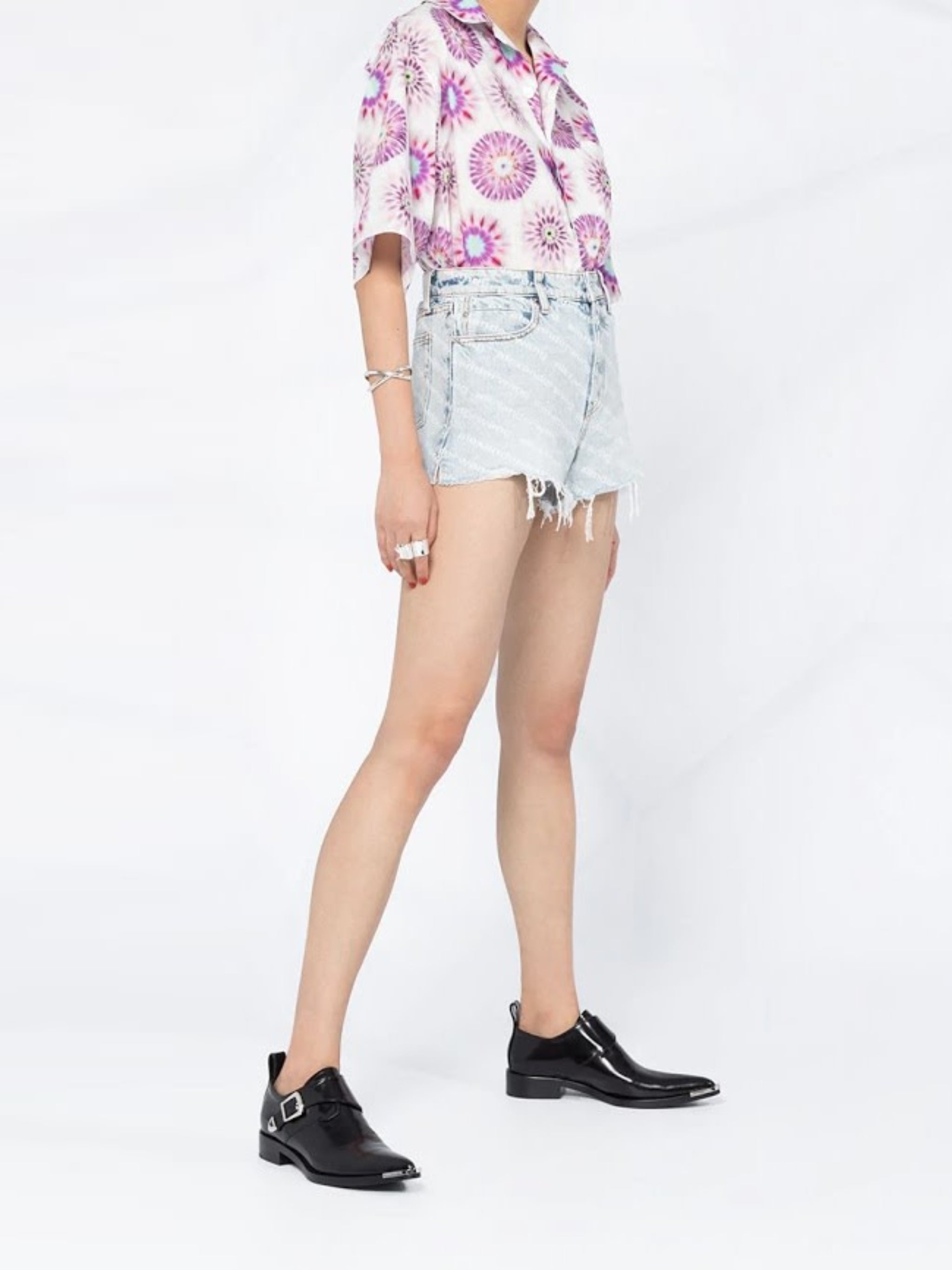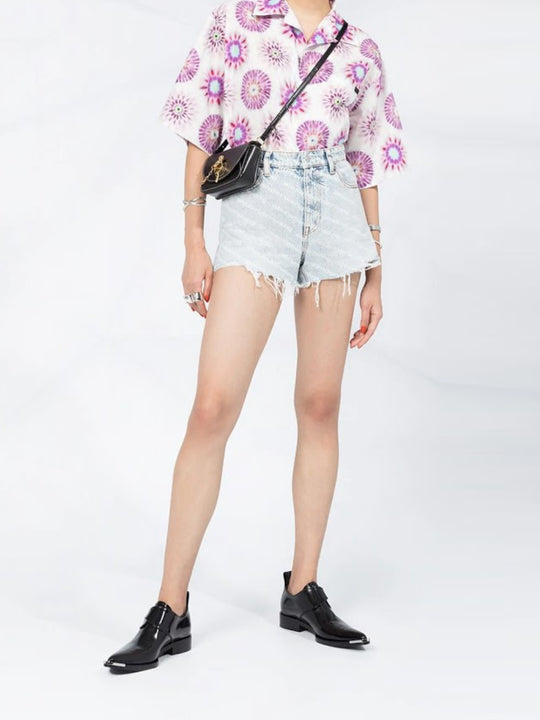- Frayed denim shorts