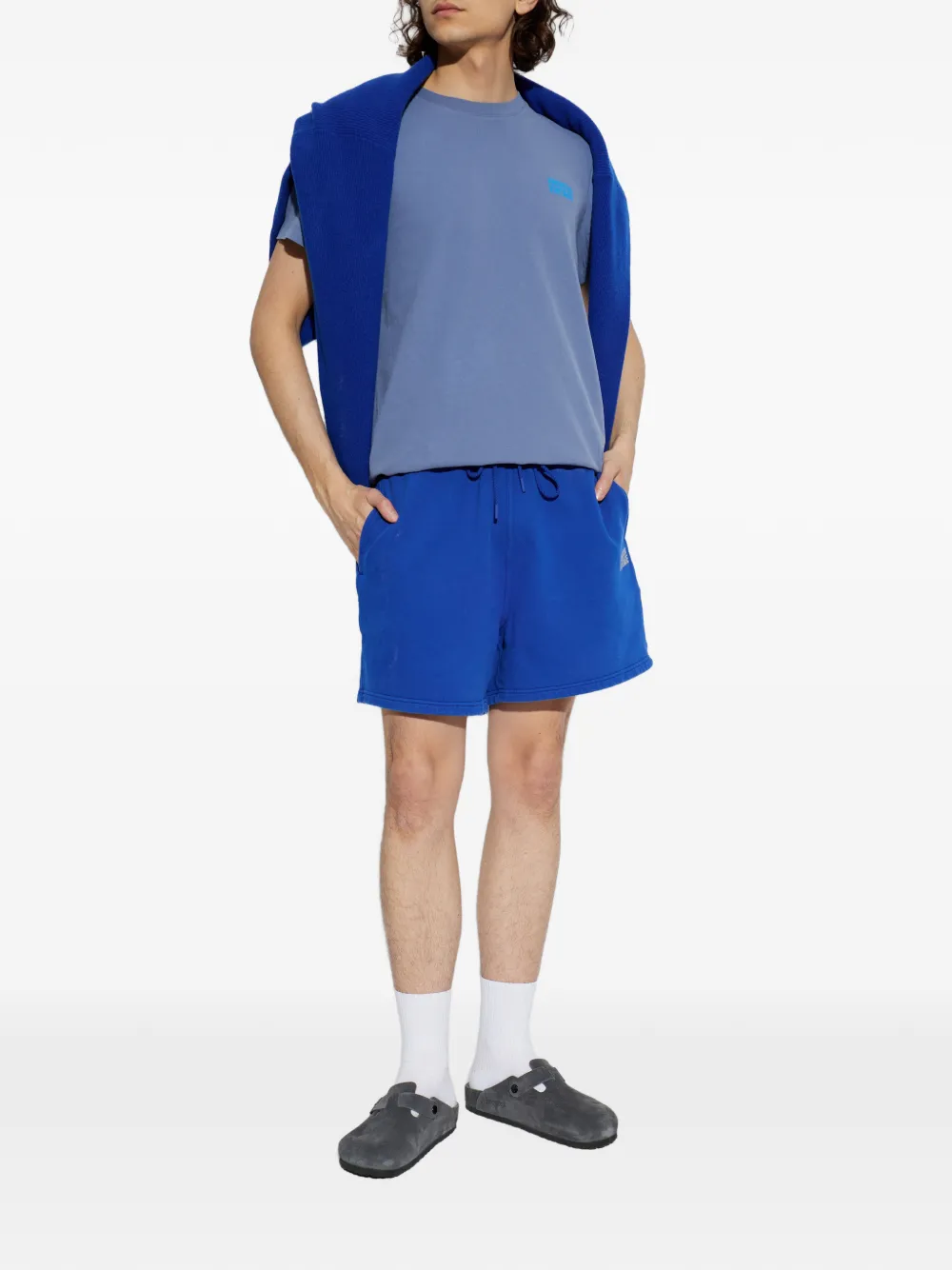 Black clog shoe worn by a person, showing the shoes fit
