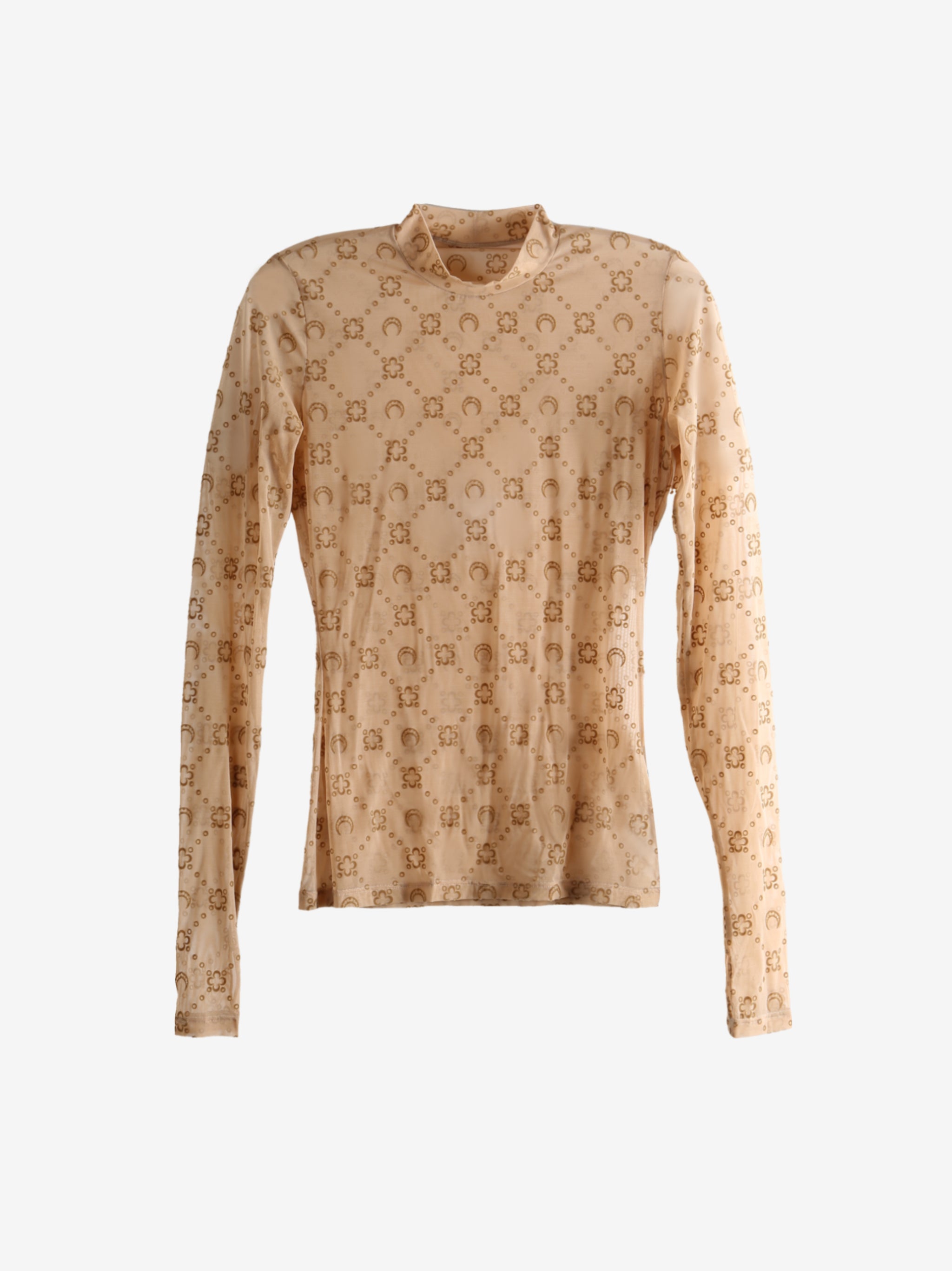 Moonogram Mesh Flock Ls Highneck Top