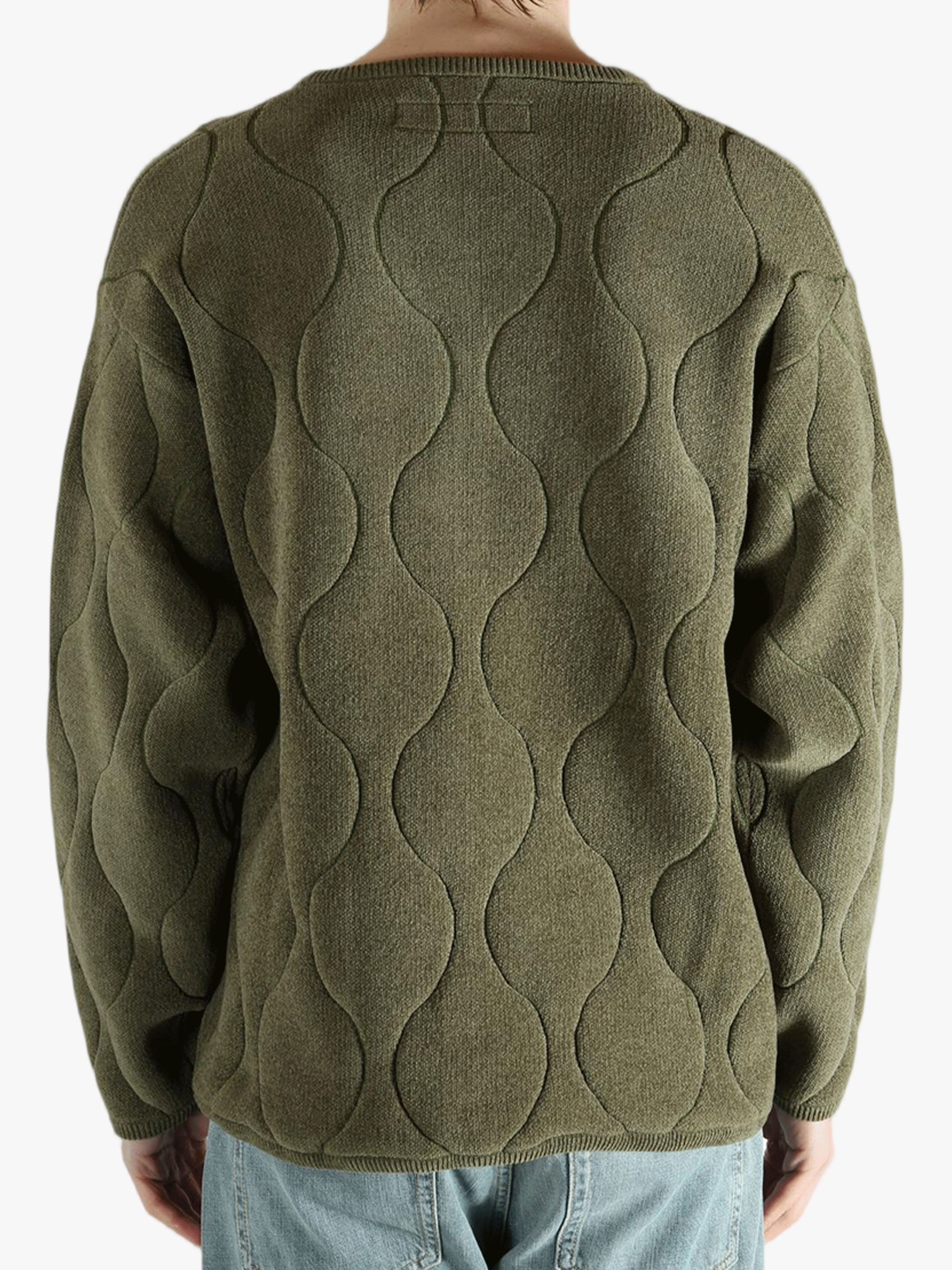 Green jacket worn by a person, showing the jacket fit