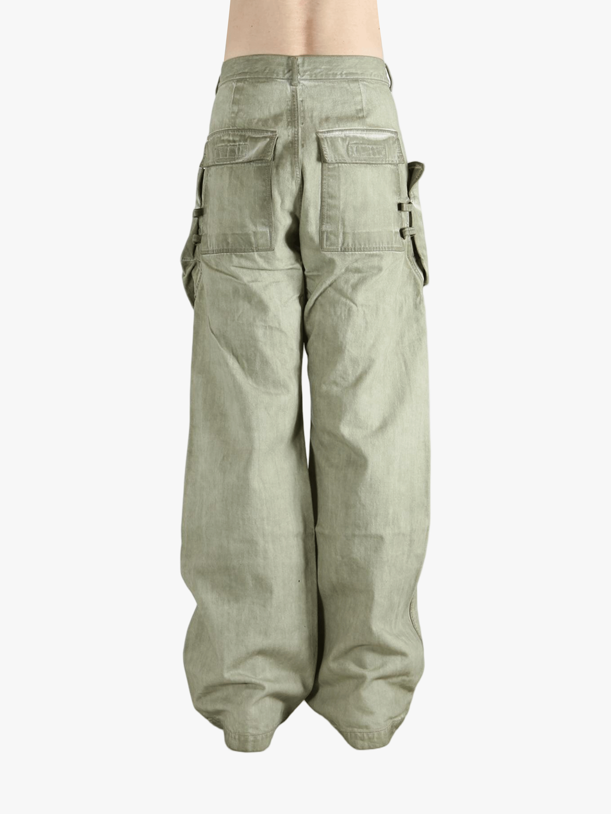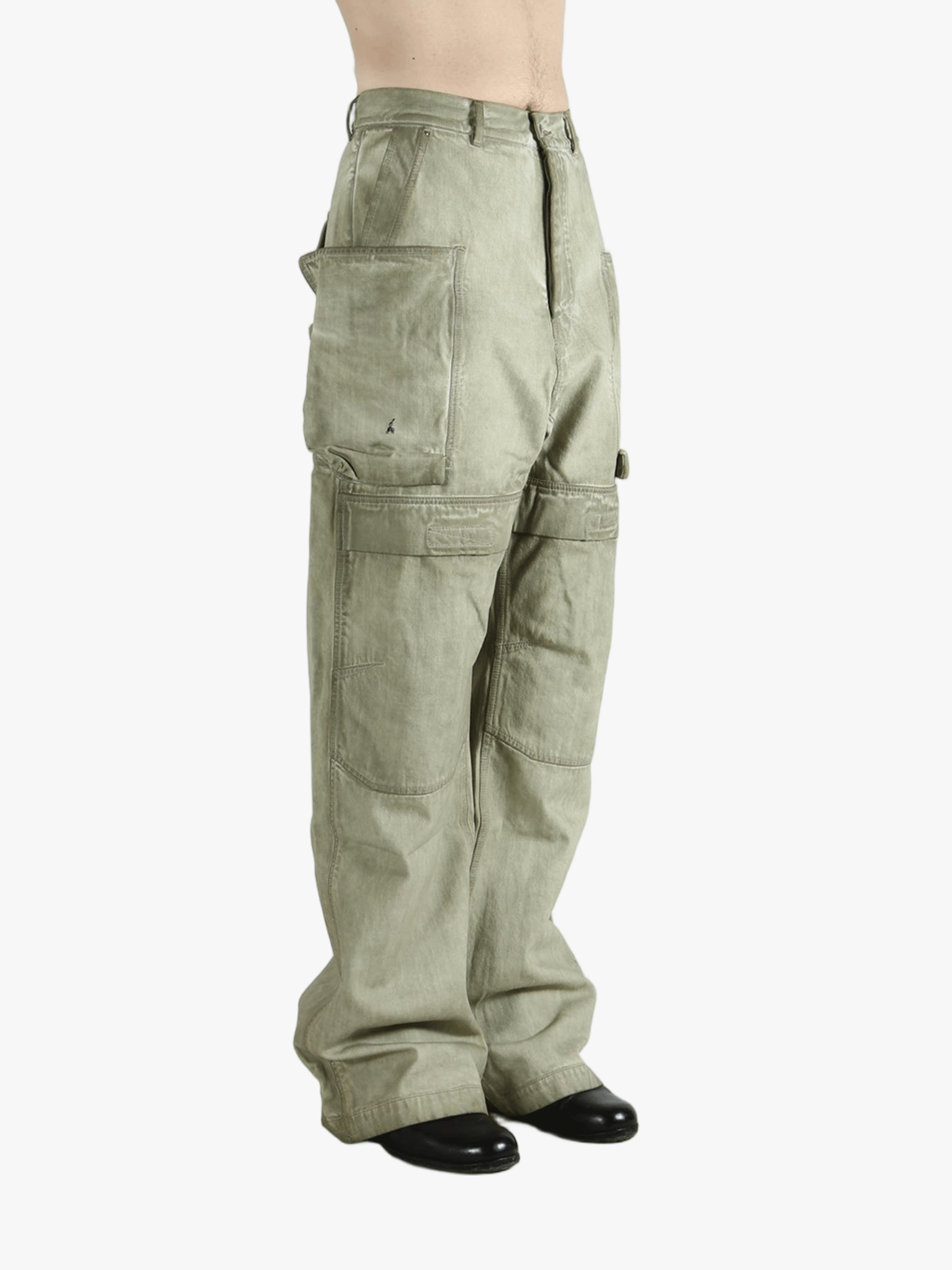 - Multiple large utility pockets on the thighs and lower legs with flaps and topstitching.