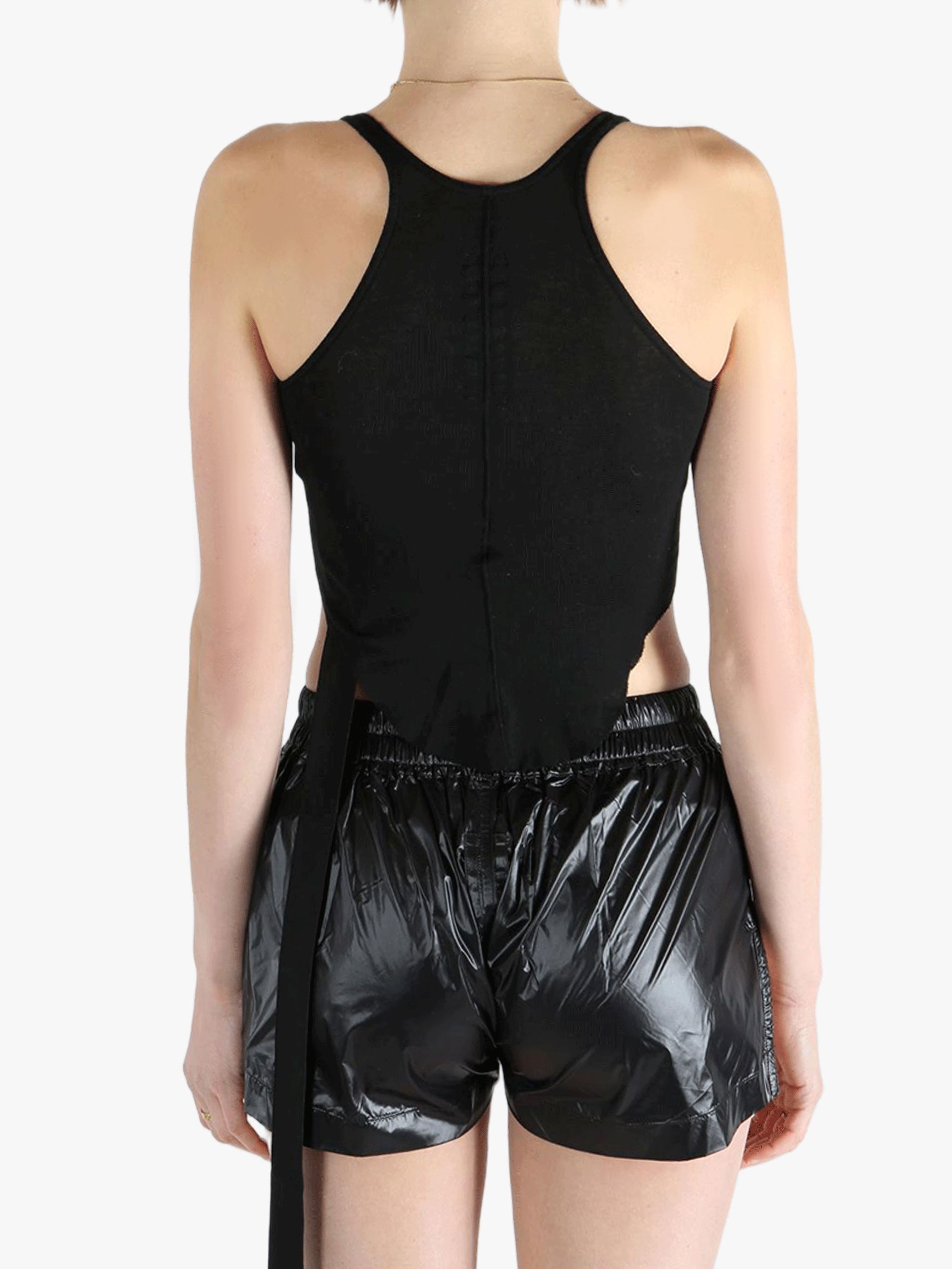 Black top worn by a person, showing the top's fit
