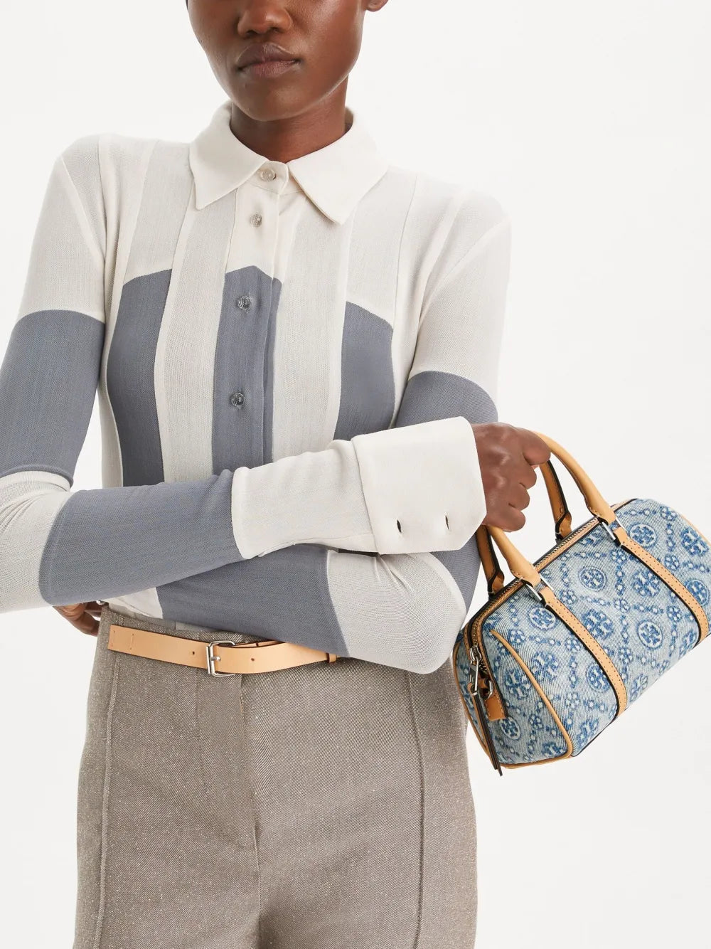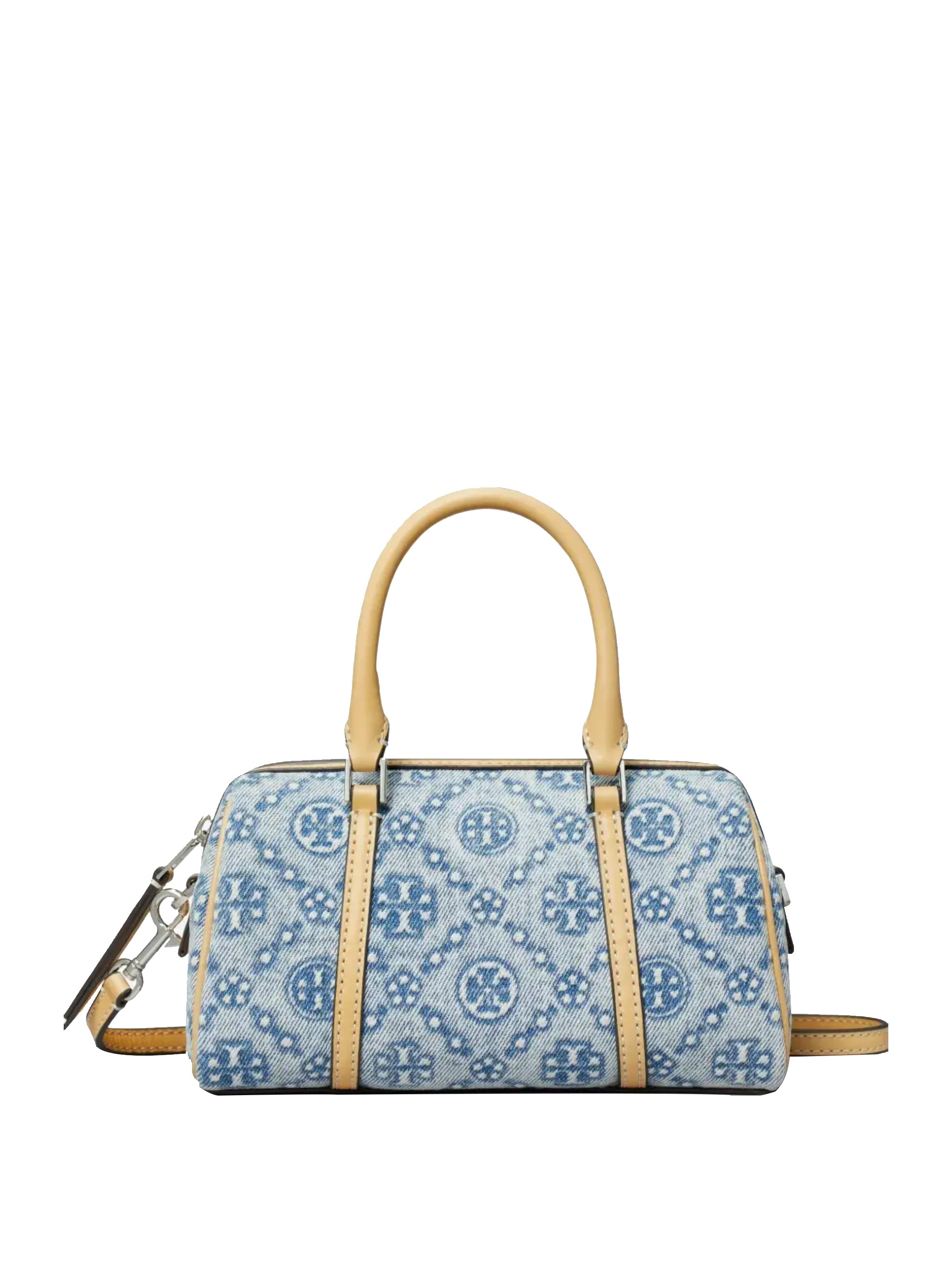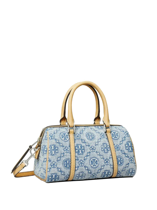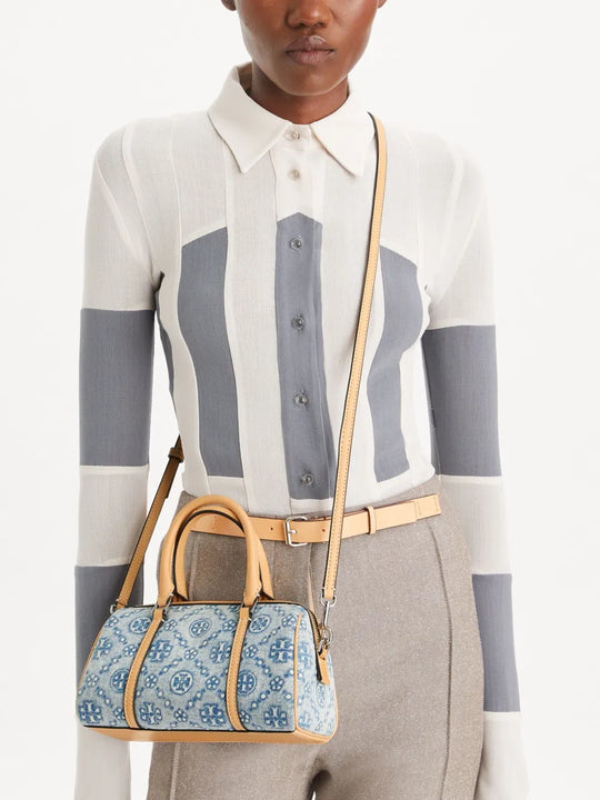 T Monogram Denim Mini Barrel Bag