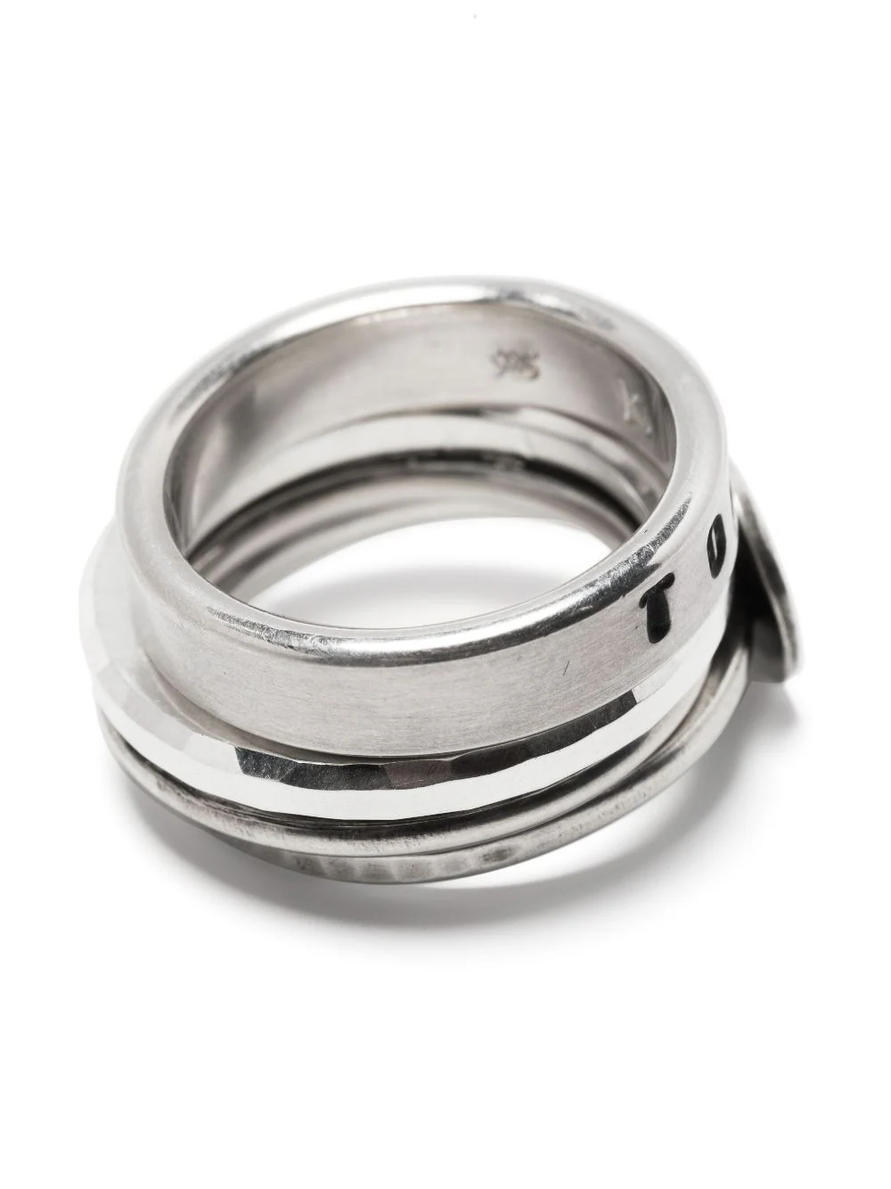 - Fourth ring hand-struck with a silversmith's hammer for textured edges